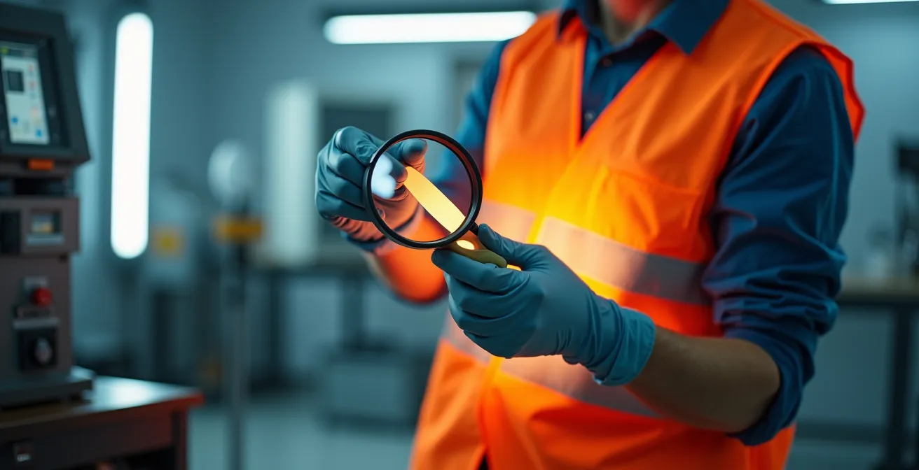 L’absence de durée de vie garantie dans la norme impose à l’employeur une obligation de contrôle visuel régulier. Ce contrôle ne requiert pas d’équipement sophistiqué, mais exige un protocole systématique appliqué par une personne formée. L’inspection porte sur plusieurs indicateurs de dégradation : décoloration visible des matières fluorescentes, fissuration ou décollement des bandes réfléchissantes, usure des coutures au niveau des zones de contrainte mécanique.